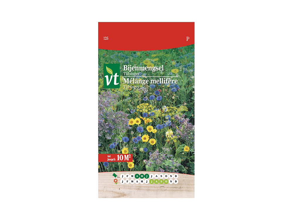 Het Tübingermengsel is een topper in de imkerwereld! Het biologisch bloemenmengsel is samengesteld uit éénjarige planten die een overvloed aan nectar en pollen produceren. Ze lokken talloze bijen, vlinders en andere nuttige insecten naar de tuin! Het mengsel bevat onder andere facelia, boekweit, mosterd, goudsbloem, nigella, korenbloem, dille,...