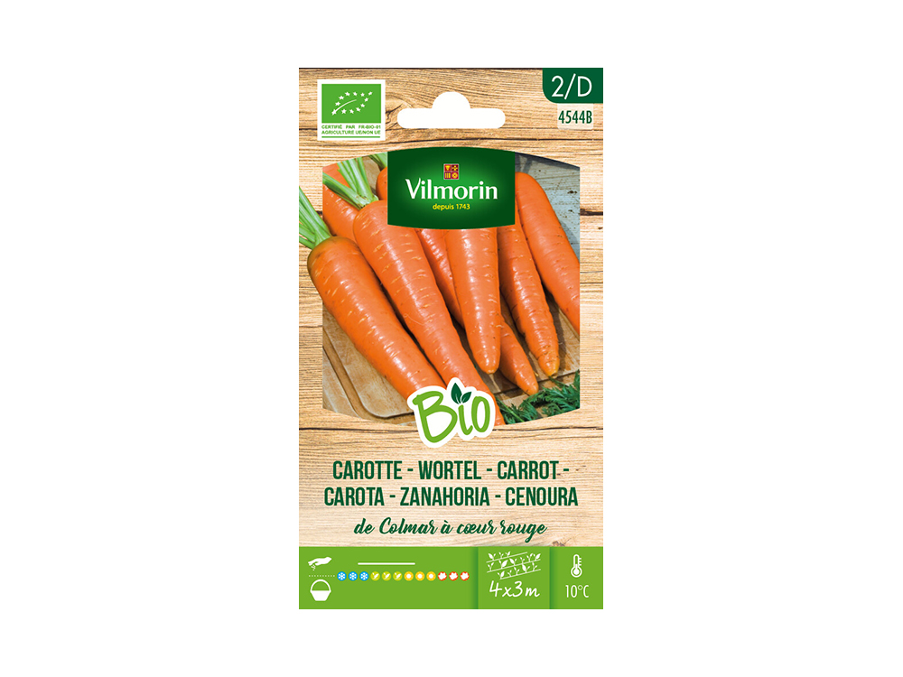 Kweek je eigen biologische wortelen met de BIO zaden van Vilmorin. Wortel Colmar is een sterke variëteit die niet veel onderhoud vraagt en is ideaal voor een oogst tijdens de herfst. De wortelen zijn groot, lang, cylindrisch met rood vruchtvlees.