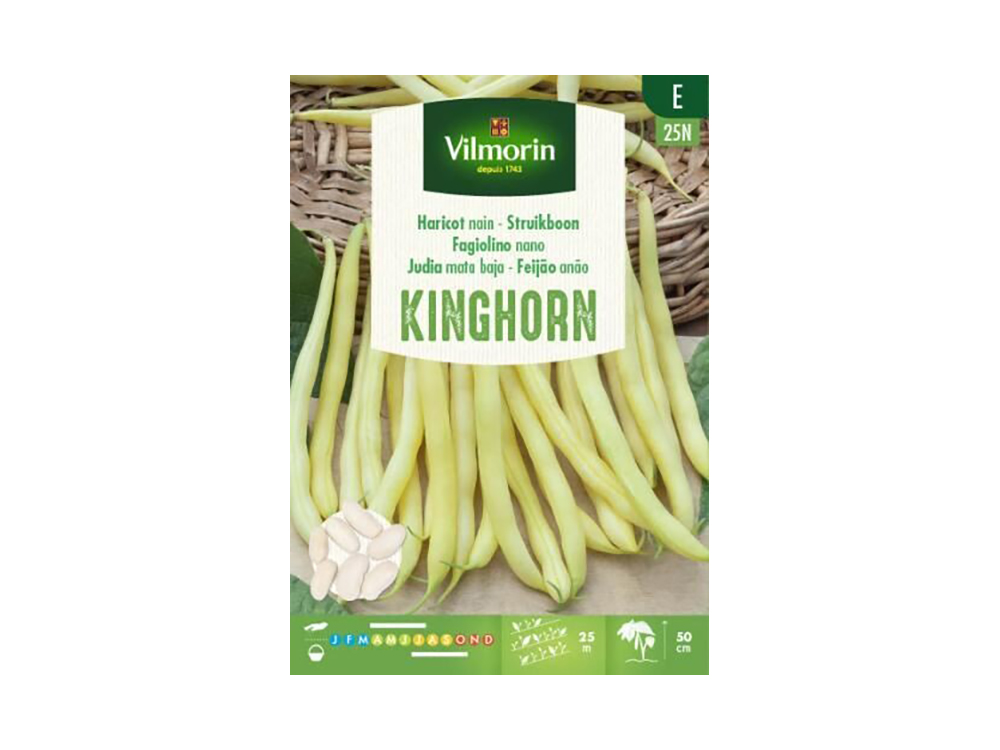 Struikboon Kinghorn is een variëteit die korte peulen vormt. Ze zijn doorgaans kleiner dan 15 cm en hebben een lichtgele kleur.
