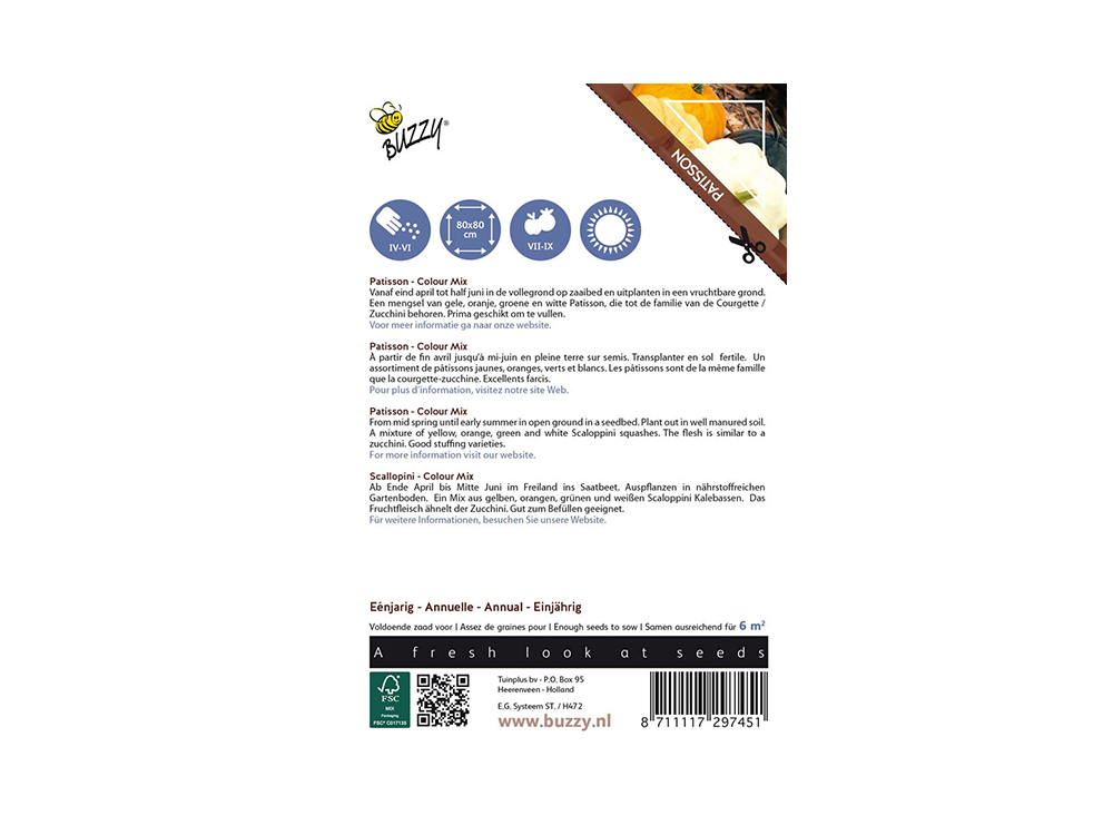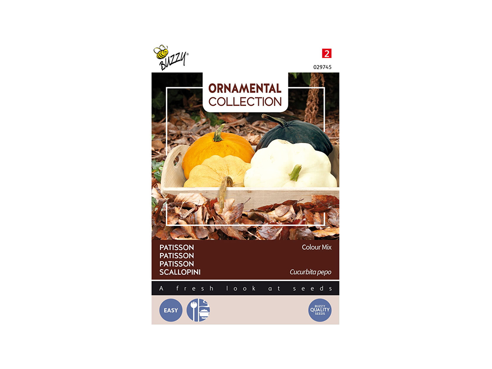 Pompoen Pattison Colour mix is een mengsel van gele, oranje, groene en witte Patisson die tot de familie van de courgette behoren. Prima geschikt om te vullen!
