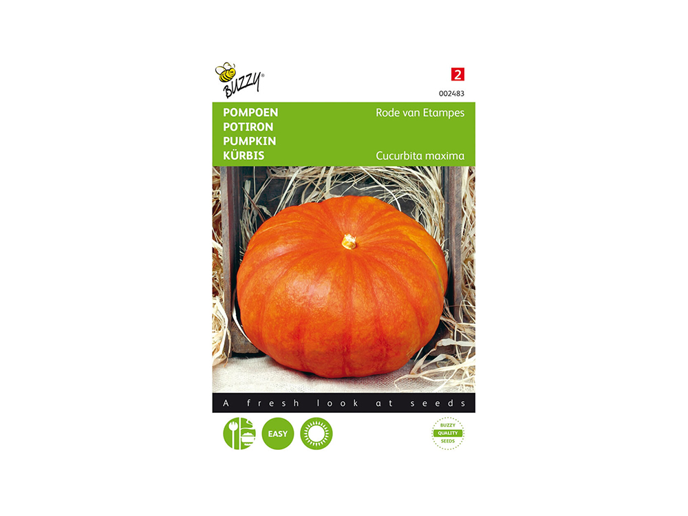 Pompoen Rode van Etampes is een platte, rood-oranje pompoen. Deze pompoen is perfect voor heerlijke gerechten en kan na de oogst enkele maanden bewaard worden op een koele plek. Ook geschikt als decoratieve vrucht.