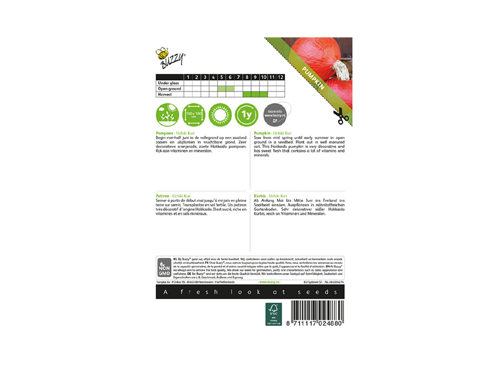 Pompoen Uchiki Kurl is een zeer decoratieve oranjerode, zoete 'Hokkaido' pompoen, rijk aan vitaminen en mineralen. De vruchten hebben lekker, donkergeel vruchtvlees.