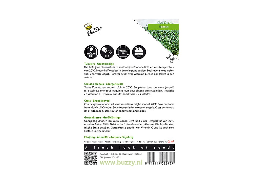 De jonge plantjes zijn rijk aan vitamine A, B, C en mineralen. Tuinkers is een week houdbaar in de koelkast.