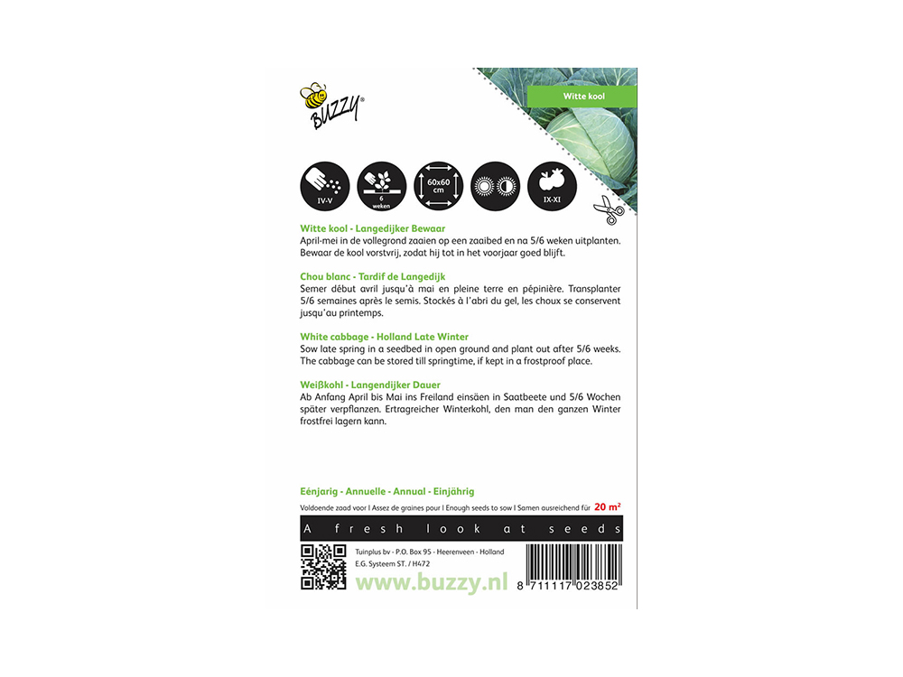 Witte Kool Langedijker Bewaar is een sterke soort die uitstekend is voor de late bewaarteelt. Het heeft geweldige bewaareigenschappen en is eenvoudig te telen, mits de kool langzaam groeit.