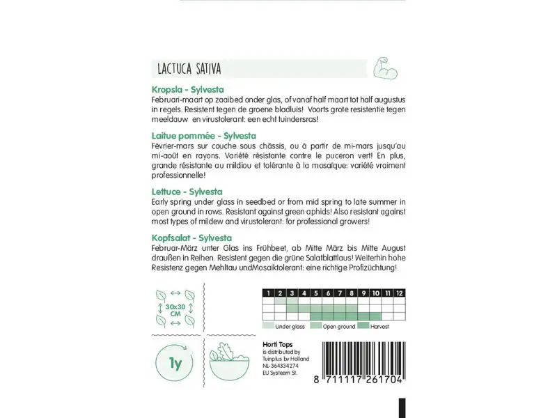Kropsla Mafalda kan je vanaf februari - maart onder glas zaaien, vanaf half maart tot half augustus in volle grond in regels. Het ras is resistent tegen de groene bladluis, tegen meeldauw en virustolerant: een echt tuindersras!