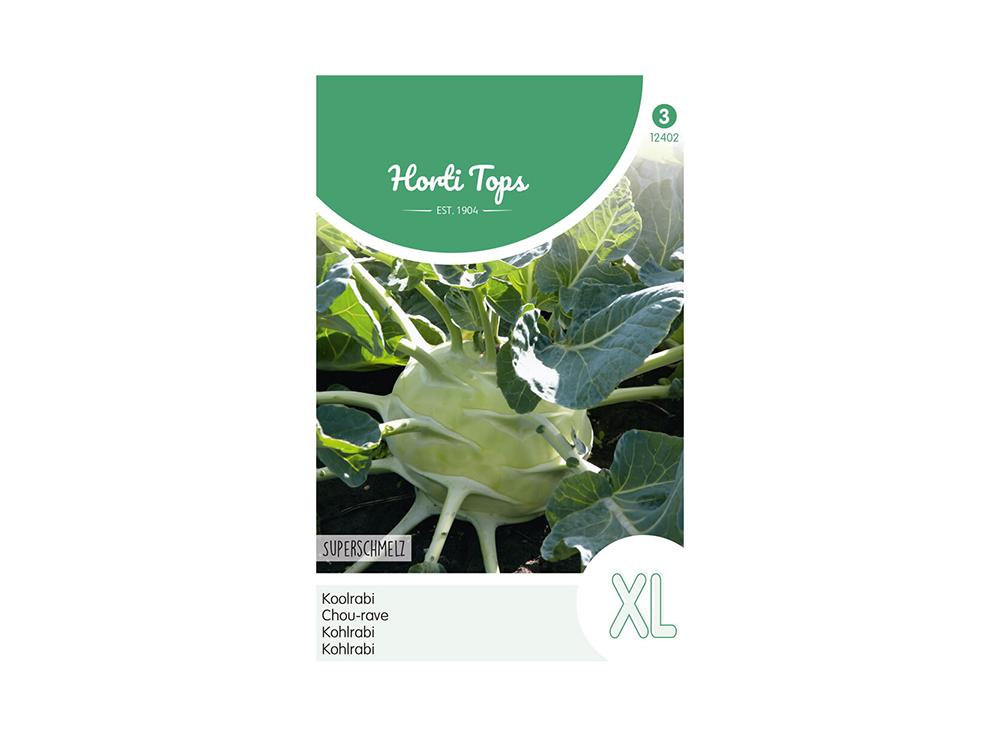 Koolrabi Superschmelz is een zeer smakelijke, boterzachte reuzenkoolrabi die een gewicht bereikt tussen de 2 en 4 kg. Vandaar is een grotere plantafstand vereist van 50 cm.