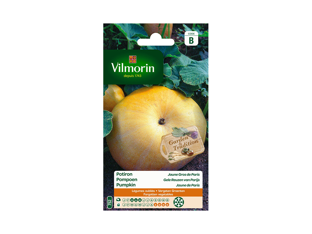 Deze klassieke variëteit Gele Reuzen van Parijs vormt zeer grote pompoenen met een geel en gesuikerd vruchtvlees. Deze pompoen wordt veel gebruikt voor de bereiding van soep.