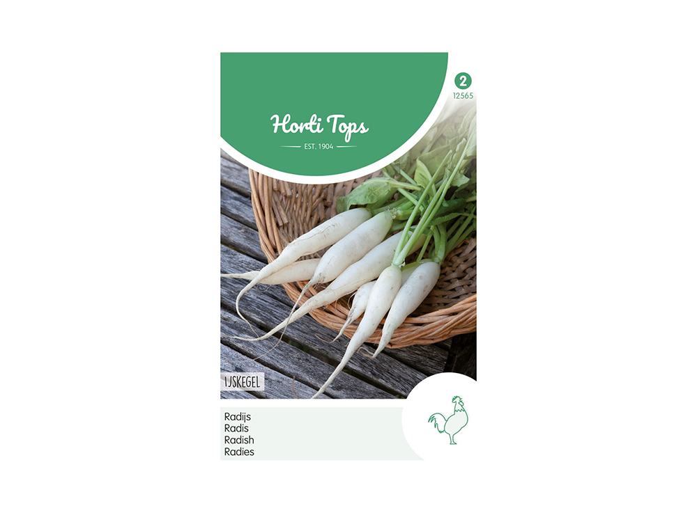 Radijs IJskegel zaai je vanaf half maart tot begin augustus in de vollegrond in regels, nadien iets uitdunnen. Zaai worteltjes of sla naast deze radijzen voor een goed biologisch evenwicht.