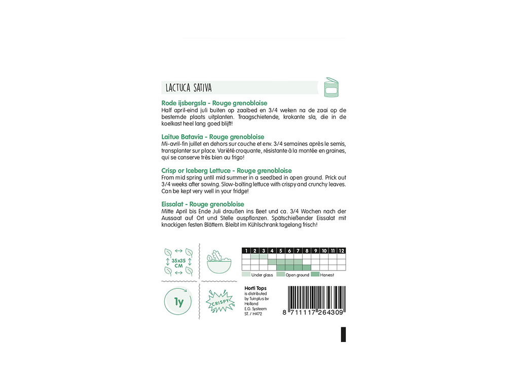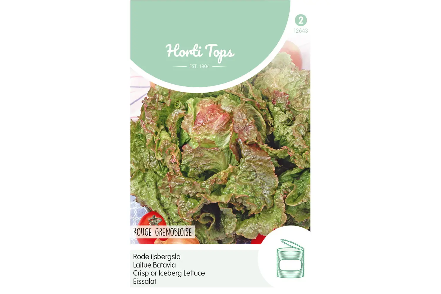 Ijsbergsla Rouge Grenobloise is een traag schietende krokante sla die bijzonder lang bewaard in de koelkast.