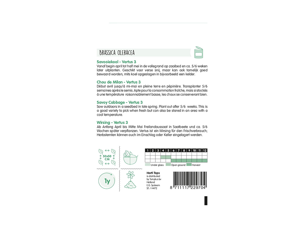 Savooiekool Vertus 3 is geschikt voor verse snij, maar kan ook tamelijk goed bewaard worden op een koele plaats.