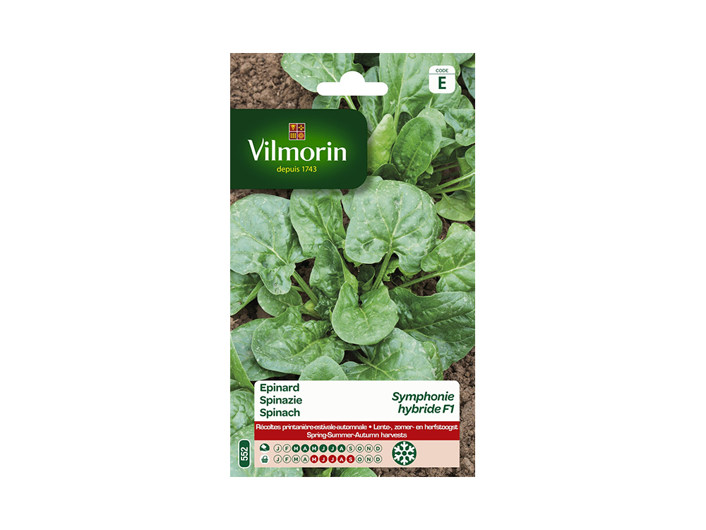 Zeer productieve variëteit Spinazie Symphonie met grote, gladde, donkergroene bladeren. Geschikt voor voorjaars-, zomer- en herfstteelt en weinig gevoelig voor doorschieten.