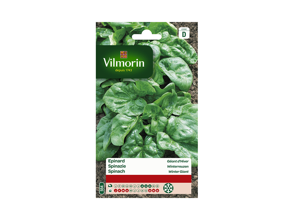 Deze hyper productieve variëteit Spinazie Winterreuzen vormt grote, gladde, donkergroene bladeren en is zeer bestand tegen de vorst. Ideaal dus voor oogst tijdens de winter. Spinazie is rijk aan ijzer en vitamines (A, B, C, E, K en PP).
