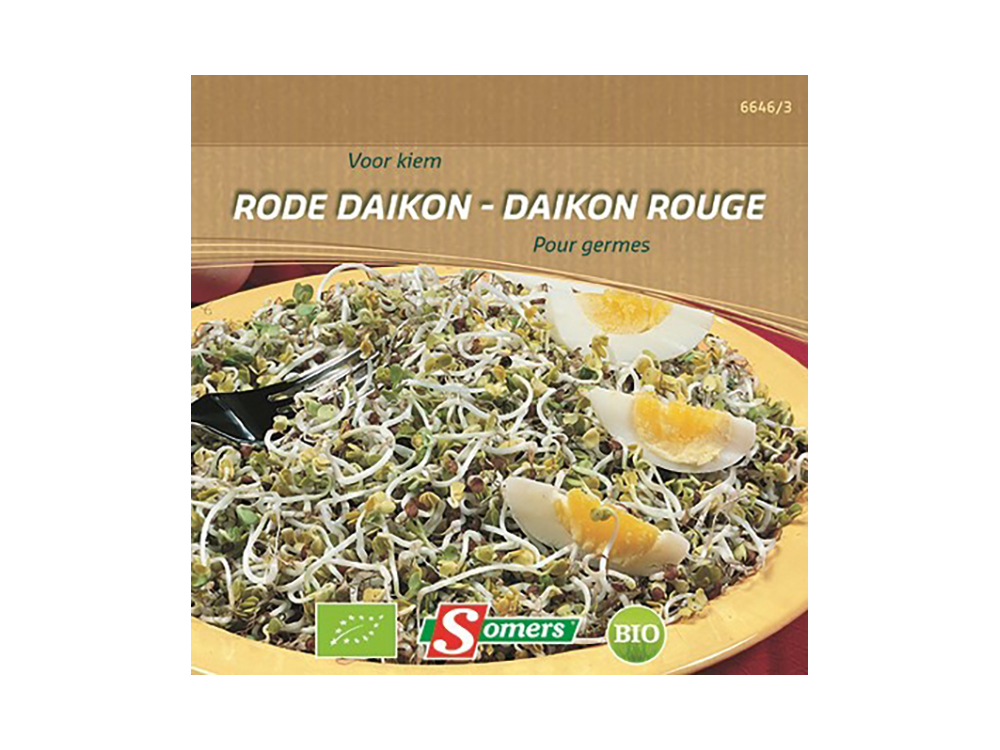 Gezonde kiem zeer rijk aan vitamines, mineralen en enzymen. Deze radijskiemen rode daikon zijn fris van smaak en licht pittig.