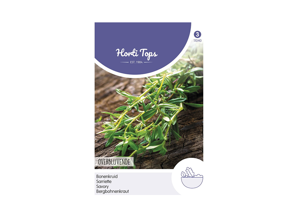 Bonenkruid Overblijvende is een ideaal kruid voor gerechten met peulvruchten. Het wordt ook gebruikt om soepen en sauzen op smaak te brengen of toe te voegen aan azijn op fles. Het is een overblijvende vaste plant met paars, rode tot witachtige bloemen.