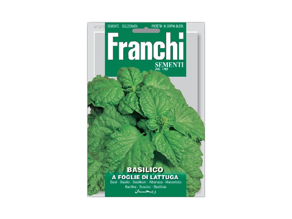 Slabladige basilicum is een krachtige plant met grote, geurige groene bladeren. Zaai deze soort als het warm genoeg is; de grote bladeren zijn perfect voor pesto!