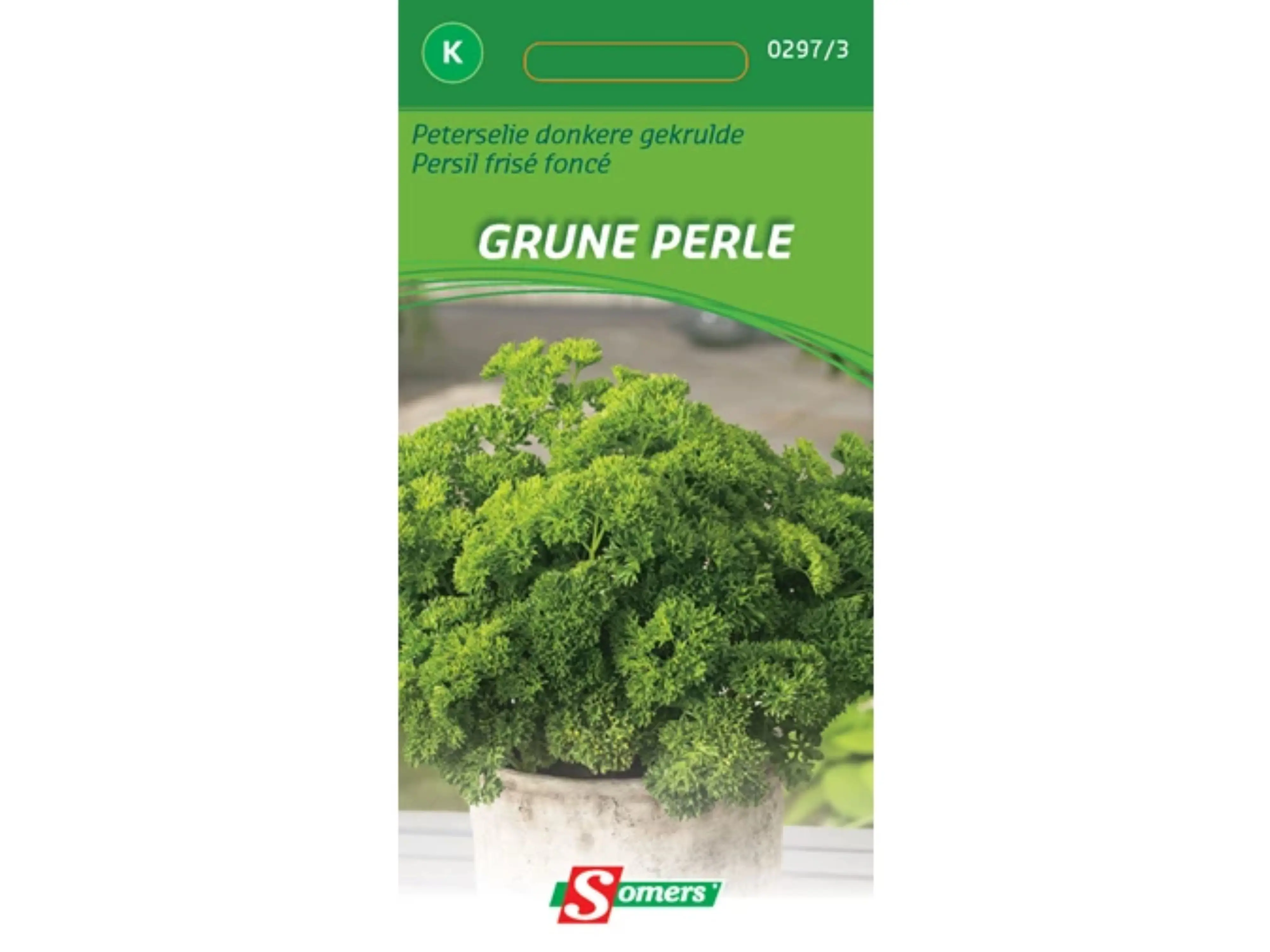 Peterselie Grune Perle is donkergroene, fijngekrulde peterselie, geschikt voor zowel volle grond als teelt onder glas.