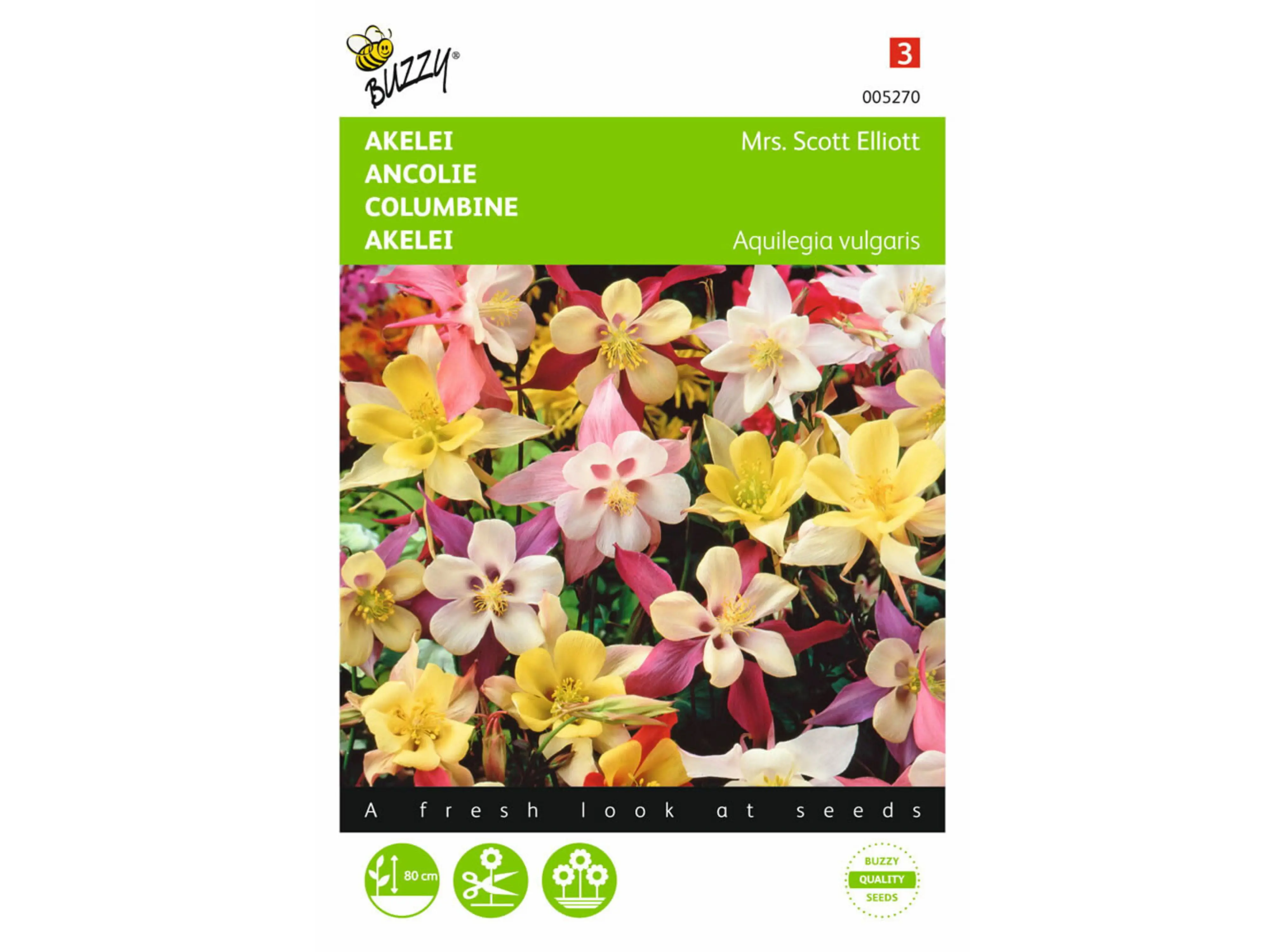 Dit pakje bevat zaad van fraaie akeleien die in allerlei kleuren bloeien. De bloemen van Akelei Mrs. Scott Elliott zijn groot en opvallend en vertonen in één bloem meestal verschillende tinten. Het zijn prachtige planten voor beschutte, wat beschaduwde plekken op iets vochtige grond. Ook geschikt voor verwildering.