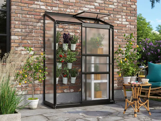 Breng jouw groene vingers tot leven met een muurserre: perfect voor wie beperkt zit in ruimte maar toch het hele jaar door wil kweken. Dankzij de beschutte plaatsing tegen een warme muur geniet je van optimale lichtinval, een stabiel microklimaat én extra bescherming tegen wind en kou — ideaal voor het voorzaaien, overwinteren of verlengen van het groeiseizoen.