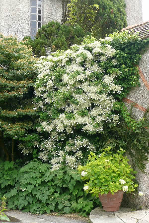 Hortensia’s zijn struiken, maar de familie telt ook een erg mooie klimhortensia, Hydrangea anomala subsp. petiolaris, voor een (half)schaduwmuur. In het begin heeft hij wat steun nodig en groeit hij eerder langzaam maar na enkele jaren heb je er geen omkijken meer naar. Vanaf juni verschijnen grote, crèmewitte, ijle bloemschermen; in de winter zorgen de gedroogde bloemen voor veel charme.