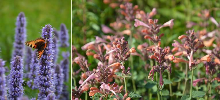 Koolwitjes houden van Agastache, en allerlei kleinere vlindertjes zoals zandoogjes, blauwtjes, … tot de kolibrievlinder toe. Geef de planten de ruimte; het zijn zonnekloppers die licht nodig hebben. Hoe meer zon, hoe meer bloemen; namiddagzon is beter dan ochtendzon. Wanneer ze te veel tussen andere planten geprangd zitten, kwijnen ze weg. Schiet je Agastache te hoog op, pas dan midden mei de Chelsea chop toe: knip een derde tot de helft van de stengels voor de helft in. Je zult later bloemen hebben, maar meer, en in een voller bos, en de stengels vallen niet meer open. Bedek jonge planten in vollegrond vanaf -7 °C met een laag bladeren of stro. Haal er, zodra de vorst voorbij is, het dek weer af, anders gaat het bladrozet rotten. De meeste Agastache zijn kortlevende planten, die drie tot vijf jaar meegaan. Soms lijkt de plant te zijn verdwenen, maar duurt het gewoon wat langer voor hij begint uit te lopen. Na een koude winter gebeurt het dat bijvoorbeeld Agastache mexicana pas begin mei enig teken van leven geeft. Tegenover dat relatief korte leven staat wel een ontzettend lange bloei, van juni tot september, zelfs nog een stuk in oktober.