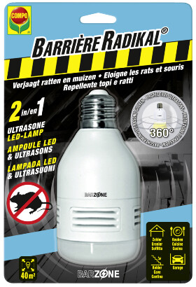 De innovatieve, gebruiksvriendelijke en milieuvriendelijke LED-lamp verandert de manier waarop we onze huizen beschermen tegen knaagdieren. De lamp werkt op basis van ultrasone golven die onhoorbaar zijn voor de mens en voor huisdieren, maar die wel worden waargenomen door knaagdieren. Ratten en muizen zijn heel gevoelig voor deze golven en zullen hierdoor de ruimte verlaten. De lamp maakt gebruik van een innovatieve technologie. In tegenstelling tot traditionele ultrasone apparaten, waarvan het bereik beperkt is, bieden de luidsprekers in de Barrière Radikal lamp een optimale 360°-dekking om de knaagdieren effectief en duurzaam uit de ruimte te weren. De lamp kan eenvoudigweg worden ingeschakeld in combinatie met de ultrasone functie of met uitsluitend de ultrasone functie (dus zonder verlichting).