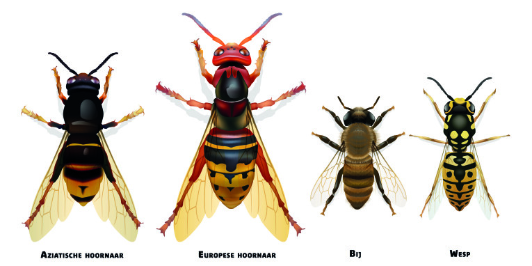 De Aziatische hoornaar (Vespa velutina) lijkt op een gewone wesp maar heeft exotische roots. In de eerste plaats vormt hij een bedreiging voor onze inheemse bijen die het zo al hard te verduren hebben. Wanneer de bijen terugkeren naar de bijenkast worden ze uit de lucht geplukt en vervolgens in stukjes aan de larven gevoederd. Dit gedrag noemt men 'bee-hawking'. Eens een nest honingbijen is ontdekt, worden ze binnen de kortste keren geëxecuteerd. De kolonies kunnen ook in groep aanvallen en bijenkasten binnendringen om de bijen in no time te doden. Bijen die de aanvallen overleven blijven bang in het nest schuilen, tot ze uiteindelijk verhongeren. Niet alleen honingbijen maar ook andere nuttige bestuivers moeten er aan geloven.
