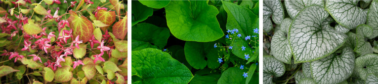 Brunnera is een laagblijvende schaduwplant. Het blad is groot en goed bedekkend waardoor het een uitstekende bodembedekker is vooraan de border. Tijdens de bloei rond april verschijnen er kleine (licht)blauwe bloemetjes op de plant die heel wat weg hebben van het Vergeet-mij-nietje (Myosotis). Een leuke variant in de border is Brunnera macrophylla 'Jack Frost'. Deze variant heeft een zilvergrijs hartvormigblad met een donkergroene nerf en bladrand.Groenblijvende schaduwplanten