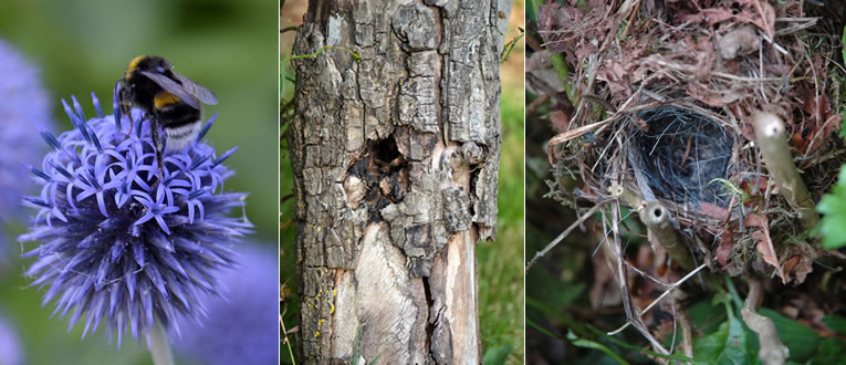 In tegenstelling tot wat al decennia lang wordt beweerd, is het niet nodig om inheemse planten in je tuin te zetten om meer bijen, hommels, vlinders of zelfs vogels aan te trekken. Er komen evenveel aantallen en soorten dieren voor in een tuin met inheemse dan met uitheemse planten. Wat wél telt is dat er veel bloemen zijn, liefst in grote groepen, die lang bloeien. Hoe meer bloemen, hoe meer hommels en solitaire wespen en bijen in je tuin. Die laatste wonen graag in holle plantenstengels van riet, vlier, braam en framboos: laat ze 's winters staan.