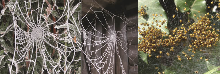 Ondanks vele pogingen is de mens er nog niet in geslaagd deze spinseldraad na te maken. In de herfst zijn veel hagen, muren en planten verfraait met echte kunstwerkjes. Het wielweb, een web in de vorm van een wiel, is een heus meesterwerk van een volwassen spin maar is geen onschuldige kunst van de spin, het is een zeer efficiënte en dodelijke val. Zodra een onwetende bezoeker een draad van het web raakt, voelt de bouwer de trillingen en komt uit zijn schuilplaats om de prooi te veroveren. Ook een web in de vorm van een trechter, hangmat of tunnel komt vaak voor in de tuin.