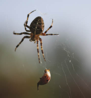 • Bidsprinkhanen, wespen en sluipwespen zijn natuurlijke vijanden van de spin.