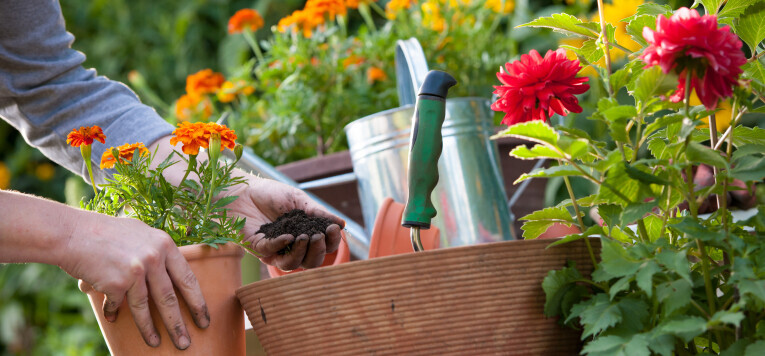 - Gebruik kwalitatieve potgrond want duurdere potgrond heeft een betere structuur waardoor deze veel meer water kan vasthouden. Het bevat bovendien een langzaam werkende meststof waarin de éénjarigen wel tot 100 dagen kunnen groeien en bloeien zonder bijkomende bemesting. Is de meststof uitgewerkt, dan kan je gebruik maken van vloeibare meststof om de planten voor de rest van het seizoen van voldoende voeding te voorzien. Met de gepaste voeding zullen ze langer en intenser bloeien.