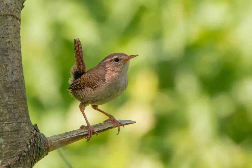 Het kleinste vogeltje dat we meest zien in de tuin, is de winterkoning. Je ziet hem vaak al huppelend door de border op zoek naar insecten.