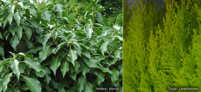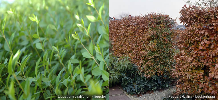Naaldhagen als x Cuprocyparis leylandii, Chamaecyparis of Thuja groeien razendsnel, worden makkelijk 4 tot 10 meter hoog, zijn niet duur in aankoop en blijven 's winters groen. Helaas heb je er ook een pak snoeiwerk aan, tot drie keer per jaar, en massa’s groenafval dat je thuis niet gecomposteerd krijgt. Niet zo ecologisch en ook geen oplossing op lange termijn.