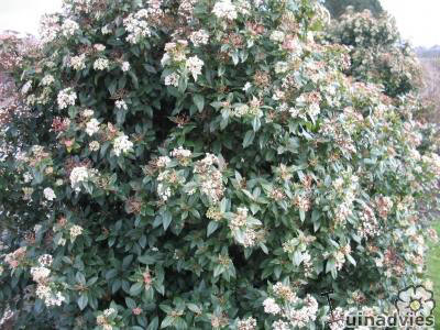 - Viburnum tinus 'Lucidum'wordt iets breder en hoger dan de vorige cultivar. De bloemen hebben een diameter van ruim 1cm. Heester met zeer donkergroene, glimmende bladeren.