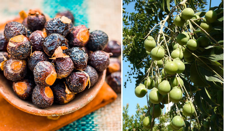 De vruchten van de grote zeepnotenboom worden al eeuwenlang gebruikt als natuurlijk wasmiddel. In de schaal van de noten zit de waardevolle stof ‘saponine’. Een stof die een reinigende en antibacteriële werking heeft en werkt als zeep in contact met water. De noten zijn goudkleurig en kleverig en worden in de zon gedroogd.