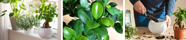 Zoals bij de meeste kamerplanten mag je de plant om de twee jaar verplanten naar een grotere pot. De ficus ontwikkelt zeer snel veel wortels waardoor de pot rap te klein wordt. Hou je de plant liever klein, snoei het teveel aan nieuwe wortels geregeld terug. Zo blijft er in de pot plaats om nieuwe aarde toe te voegen.