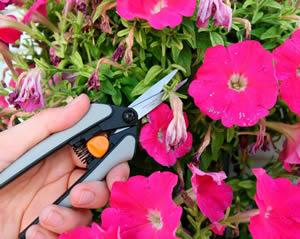 Als planten zaad kunnen zetten, neemt de bloei af. In de natuur betekent zaadvorming de instandhouding van de soort en daarmee is de levenscyclus rond. Een- en tweejarige planten leven kort en bloeien uitbundig om hun voortbestaan te garanderen. Bij gebruik als sierplant wil je ze graag zo lang mogelijk in bloei houden. Dan helpt het om uitgebloeide bloemen weg te knippen. Dit prikkelt planten om nieuwe bloemknoppen aan te maken, want de drang om zaad te produceren is groot. Vooral hangmanden zijn vaak beplant met veel soorten. Als sommige planten erg groot of lang worden, is de combinatie niet meer in evenwicht. Dan wordt het tijd om te snoeien. Knip te lange stengels af zodat ze zich vertakken en weer bloemknoppen aanleggen.