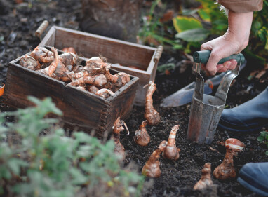 Maar zover is het nog niet - eerst moeten ze de grond in. En dat kan vanaf nu. Voorjaarsbollen hebben namelijk een koude periode nodig om te kunnen bloeien. Plant ze daarom in de herfst, vanaf september tot vóór de eerste vorst. Hoe sneller na aankoop, hoe beter. Toch nog even wachten? Bewaar ze dan op een droge, donkere en koele plek, bij voorkeur tussen de 10 en 15 °C.
