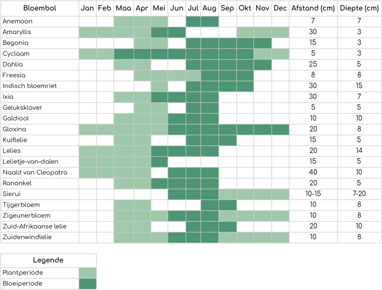 Het kiezen van de juiste soorten is al een hele opgave. Daarom helpen we jou graag verder met een overzicht van de plantperiode en in welke maanden van het jaar de zomerbloeiers zullen bloeien. Maak er een bij- en vlindervriendelijke tuin van en kies voor een combinatie van verschillende soorten.