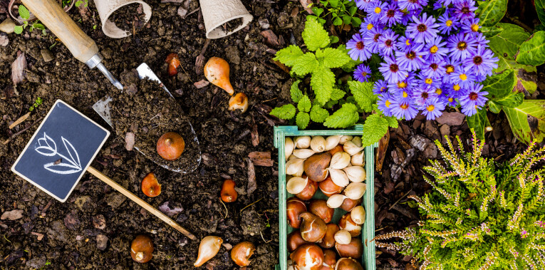 - Markeer de plaatsen waar je al bollen hebt geplant met kleine stokjes, zodat je niet opnieuw een gat graaft waar je reeds een bloembol hebt geplant.