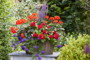 Geranium (botanische naam: Pelargonium) is een van de populairste planten voor op balkon of terras. Dat komt niet alleen door het gevarieerde kleurenpalet, ook de verschillende bloeiwijzen en de frisse, fruitige geur maakt de zomerbloeier haast onweerstaanbaar. En de verzorging is eenvoudig. Behalve witte, roze, rode en paarse geraniums zijn tegenwoordig ook meerkleurige soorten verkrijgbaar. Behalve de bekende Franse geranium (P. grandiflorum) zijn er onder meer ook hangende (P. peltatum) en zogenoemde ‘staande’ soorten (P. zonale). Ze zijn allemaal rijkbloeiend, behalve de geurgeranium. Die heeft mooi frisgroen blad en verspreidt een heerlijk parfum variërend van citroen- tot appelgeur!