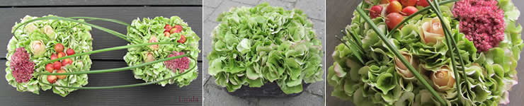 Bloemstuk met Hydrangea: aan elkaar geschikt of los. Lees hier wat je nodig hebt en hoe je te werk gaat om dit originele bloemstuk te maken.