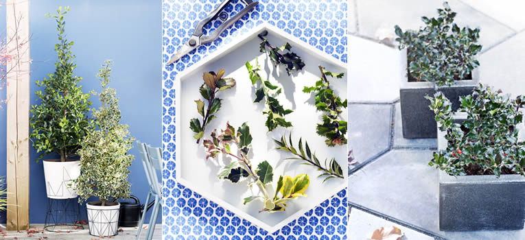 Behalve metershoge hagen zijn er ook kleine en middelgrote hulstplanten zowel in struik-, bol- als kegelvorm. Ideaal om op natuurlijke wijze geometrische vormen in de tuin aan te brengen. Omdat hulst bovendien een trage groeier is, hoef je nauwelijks te snoeien. Creëer diepte in de tuin door potten met hulst op verschillende hoogten te zetten, bijvoorbeeld op de grond, op een rekje of een krukje.