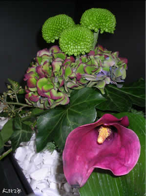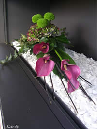 - Snij de Calla goed schuin op maat en steek ze tussen de Cornustakken.