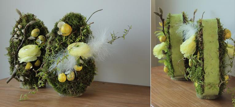 Kram de plastic buisjes voor je bloemen niet té hoog. Verdeel je decoratie gelijkmatig over beide zijden van het ei : het mag van alle kanten gezien worden. Succes gegarandeerd!