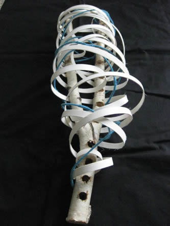 Knip een aantal repen pitriet en niet onderaan de tak vast. Maak naar believen de gewenste vorm.