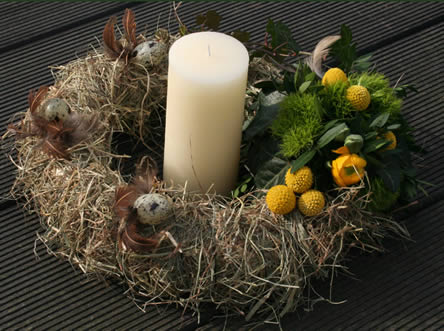 - Dit is een eenvoudig zelf te maken bloemstukje, de getoonde voorbeelden zijn telkens met een andere afmeting van strokrans, deze zijn in de handel te verkrijgen.