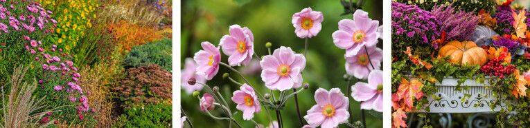 Op het einde van de zomer worden heel wat vaste planten en struiken weelderig en verliezen ze hun charme. De zomerbloeiers beginnen af te sterven of zijn reeds volledig verwelkt. Bepaalde planten zijn sterk genoeg om de ganse winter te blijven staan, zoals de kaardebol maar anderen moeten bijgesnoeid worden. Verbena bloeit bijzonder lang en zorgt voor een mooie overgang tussen zomer en herfst, Aster en herfstanemonen staan nog in volle bloei, net zoals Sedum. Siergrassen pronken nog een tijdje verder en Persicaria en Rudbeckia geven nog een laatste glimp.