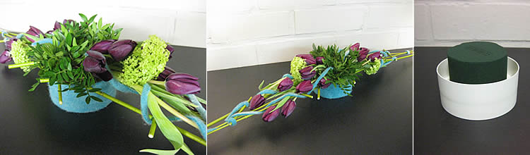 Haal de tulpen een aantal uur voor gebruik uit het water. Zo worden ze buigzamer om te verwerken. Haal het overtollig blad er af door voorzichtig het blad te breken / kraken en af te scheuren.Hoe ga je te werk?
