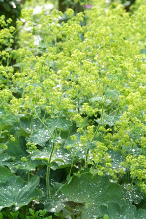 Vrouwenmantel is een sterke plant die zich in elke border thuis voelt. De frisgroene, waaiervormige bladeren zijn sprookjesachtig mooi – in het bijzonder als er dauwdruppels op liggen. De geelgroene bloemen zijn goed te gebruiken in boeketten, maar vergeet ook het blad niet!